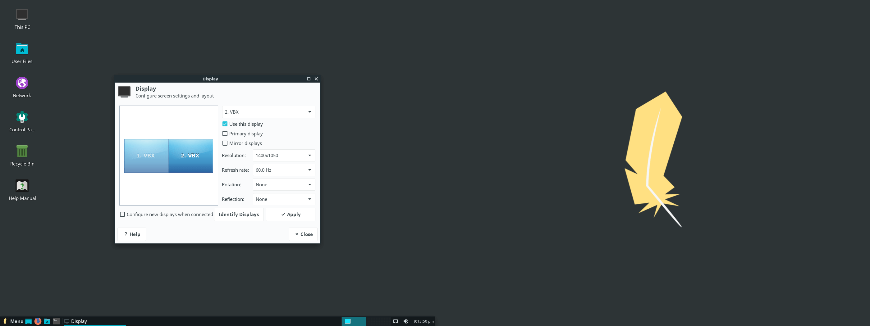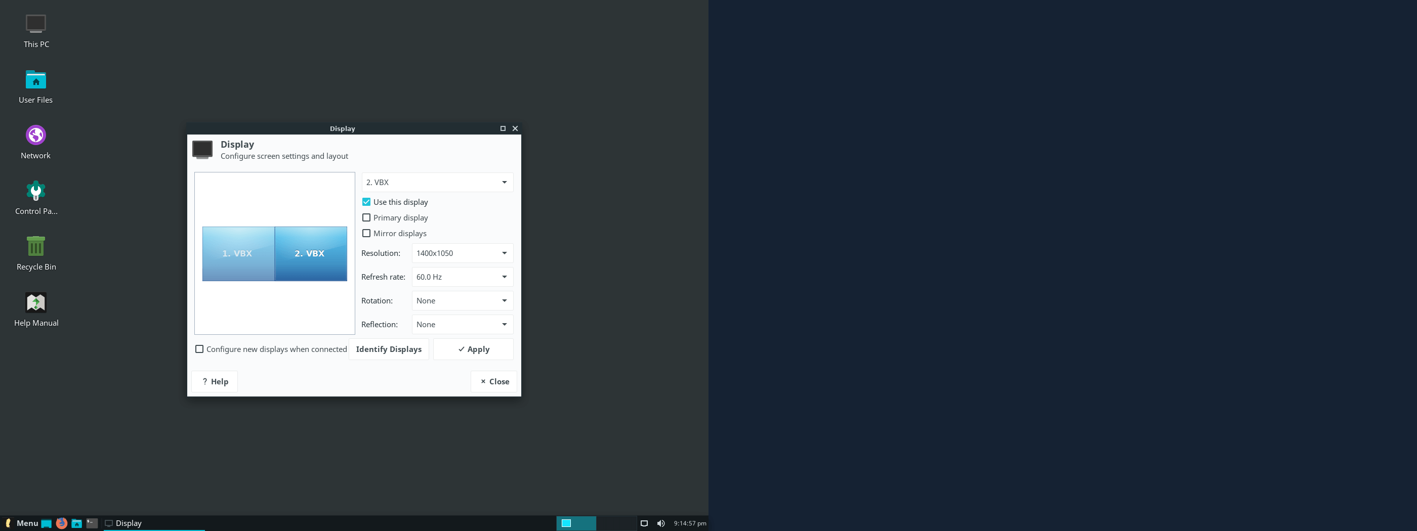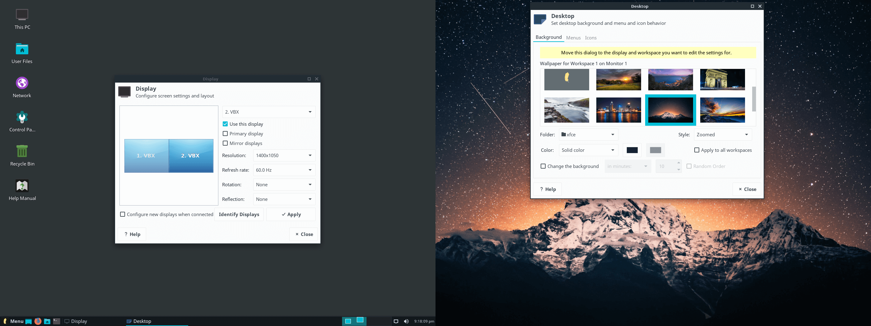 Once they are no longer mirrored, you may see that one of them is missing the desktop wallpaper and the lower panel only spans one of them.