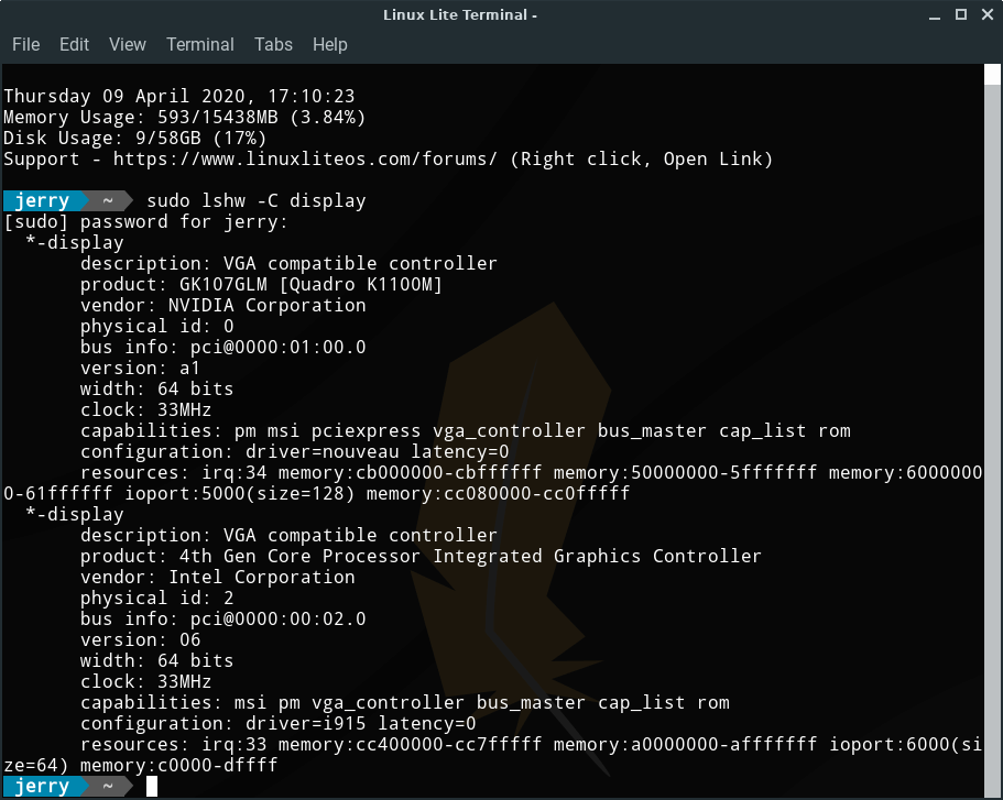 This method should ONLY be used if the above nVidia install method does not give you Prime options in the Nvidia Settings Manager. From a fresh install of Linux Lite, open up a terminal and type: