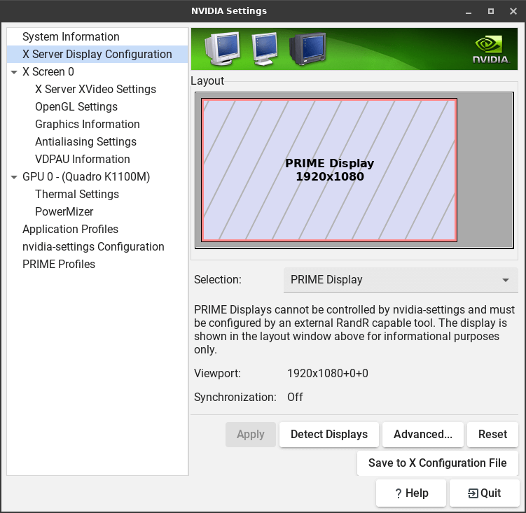 Once you open NVIDIA X Server Settings, you will have a number of options to select as well as some technical data to look over.