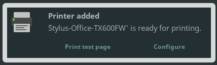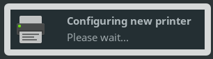 2. If a printer and driver has been detected you will see this dialog. (Note, the dialog should appear in upper right of your screen)