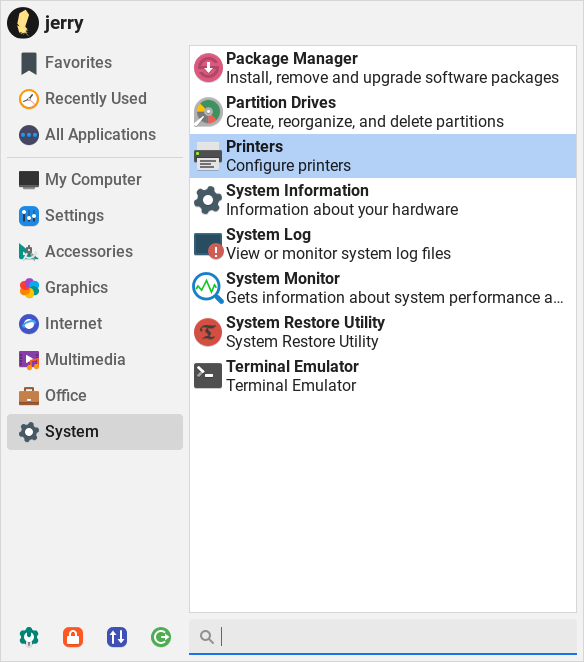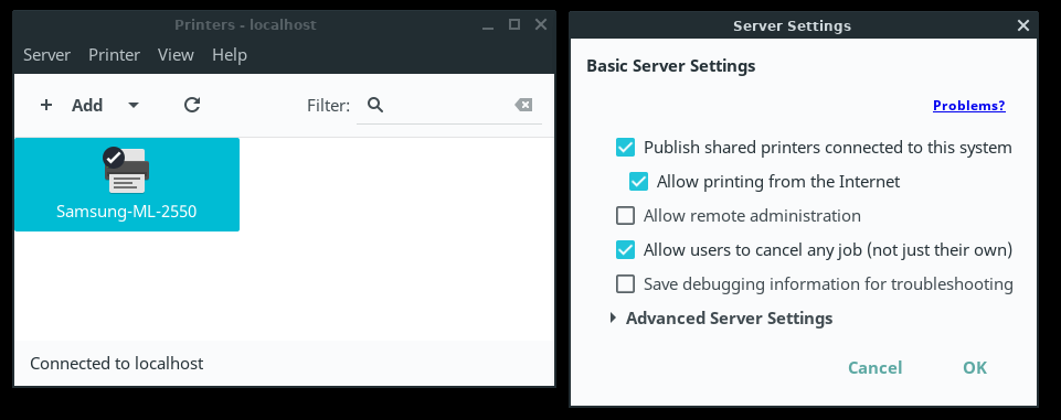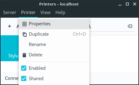 3. You can further configure or manage printing jobs or printers by going to printing located in Menu, System, Printers.