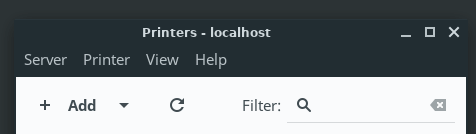 6. If a printer if not listed in the window after opening it, you will need to plug in the device and click on the + sign located below the menu.