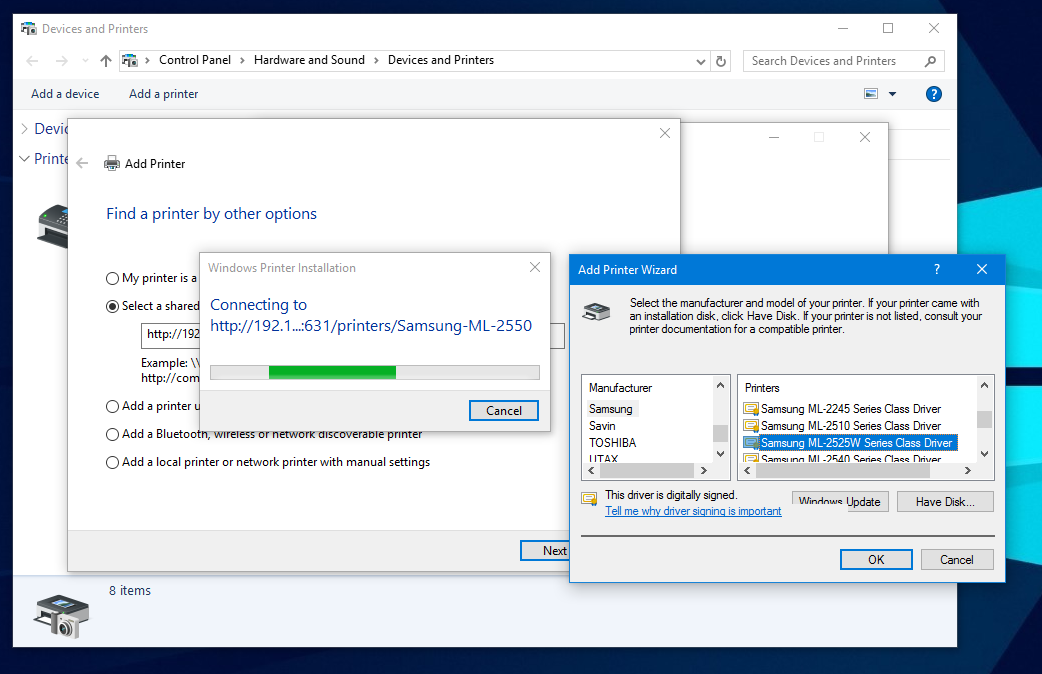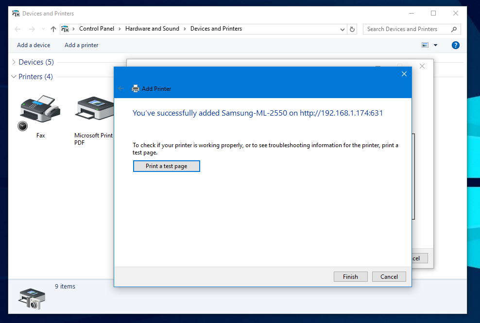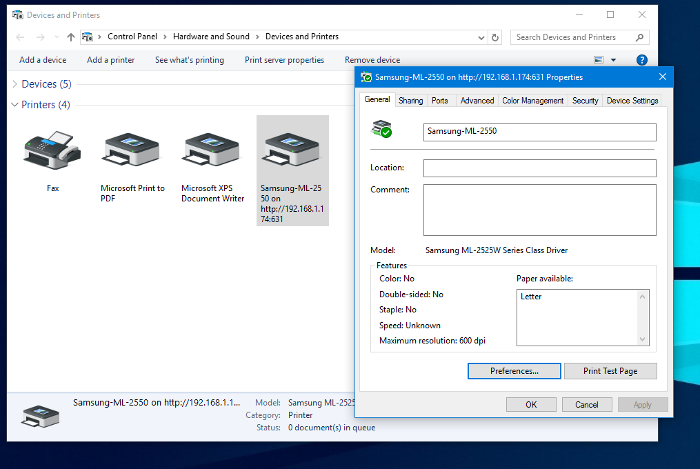 Before going into Windows, make sure you know the correct name of your printer. For example, my printer name is Samsung-ML-2550 (case sensitive). This is the name you define when adding the printer to Linux Lite. You do not want to have spaces in the name and also understand that lower case and UPPER case do make a difference in Linux. So, with that said, in Windows 10: