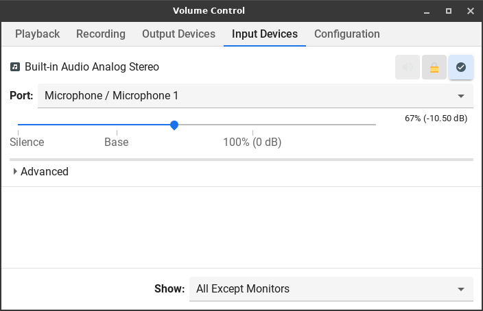 Input Devices - this includes microphones and other line-in devices, such as TV tuner cards with line in. Adjusting the levels and settings are the same method as described above.