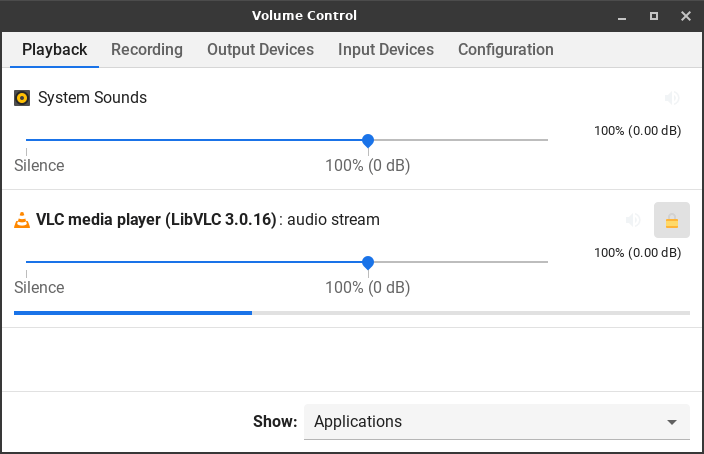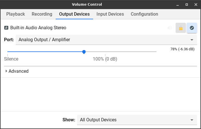 In the window above you can adjust volume settings for output. Using the sliding bars. You can toggle mute with the