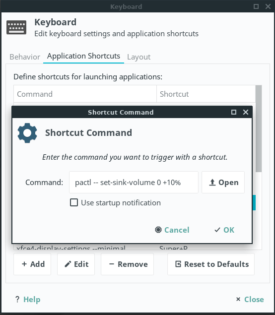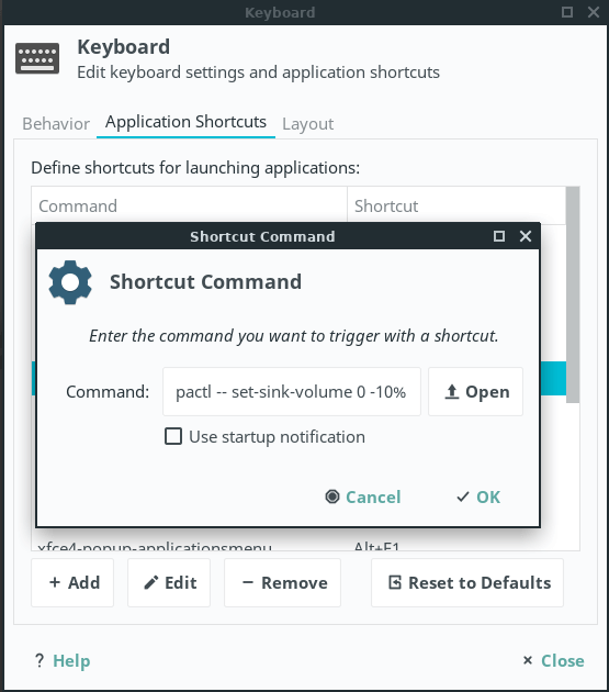 4. To set a toggle to lower the volume by 10% each time, repeat steps 1 -3 above but this time to lower the volume, enter this command: