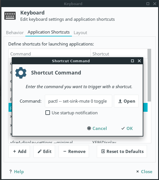 6. To set a toggle to mute the volume repeat steps 1 -3 above but this time to mute the volume, enter this command: