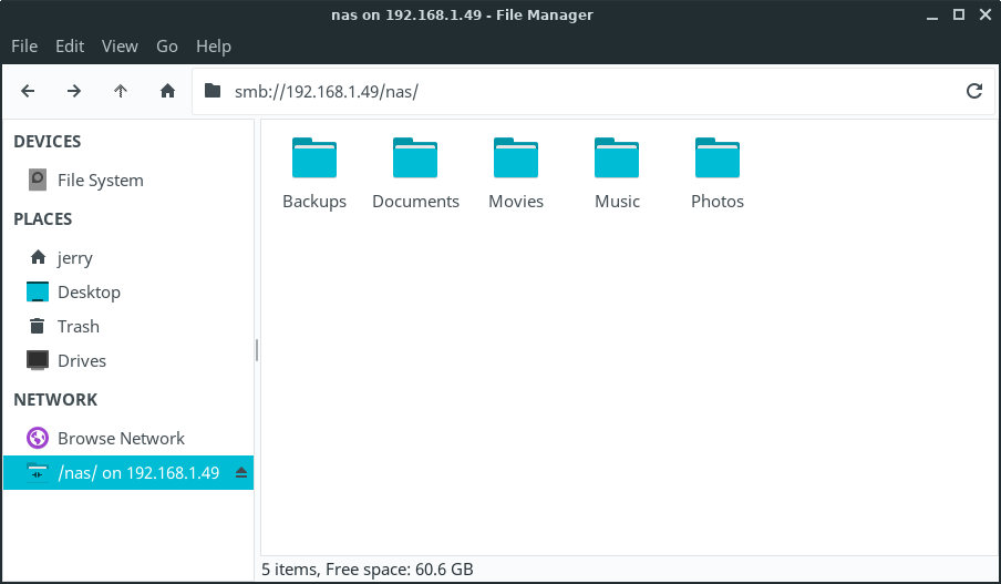 First thing you need to do is find the IP address of your NAS. You may know this already or your NAS manual will show you how to find this. Once you have your NAS's IP address, open up your home folder and type in the following: