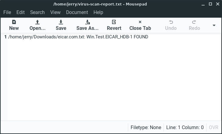 When the scan has finished, open the virus-scan-report.txt in your home folder and look to see where any viruses may be residing: