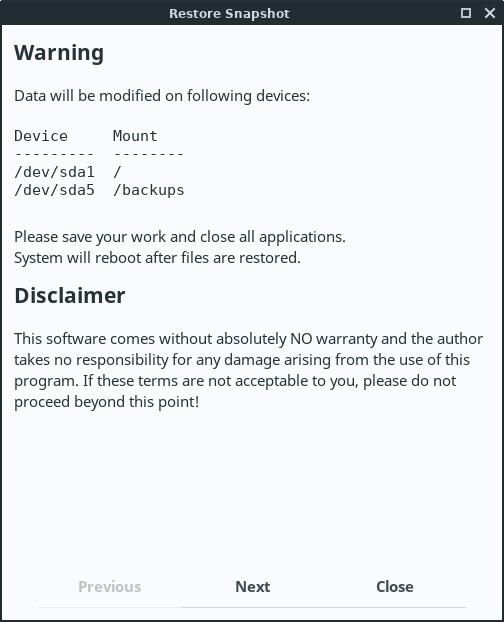 Timeshift - Restoring a backup.