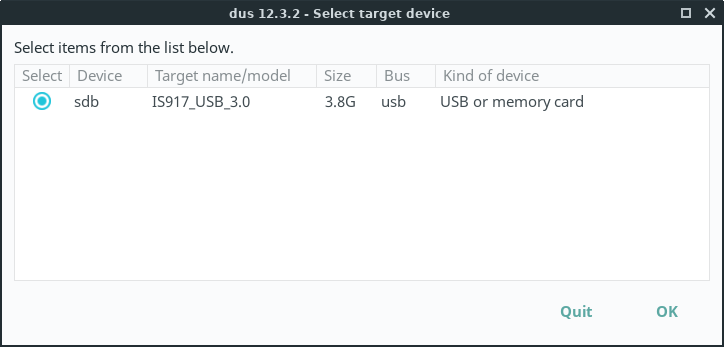 Make sure the correct USB device is listed and selected and click on OK.